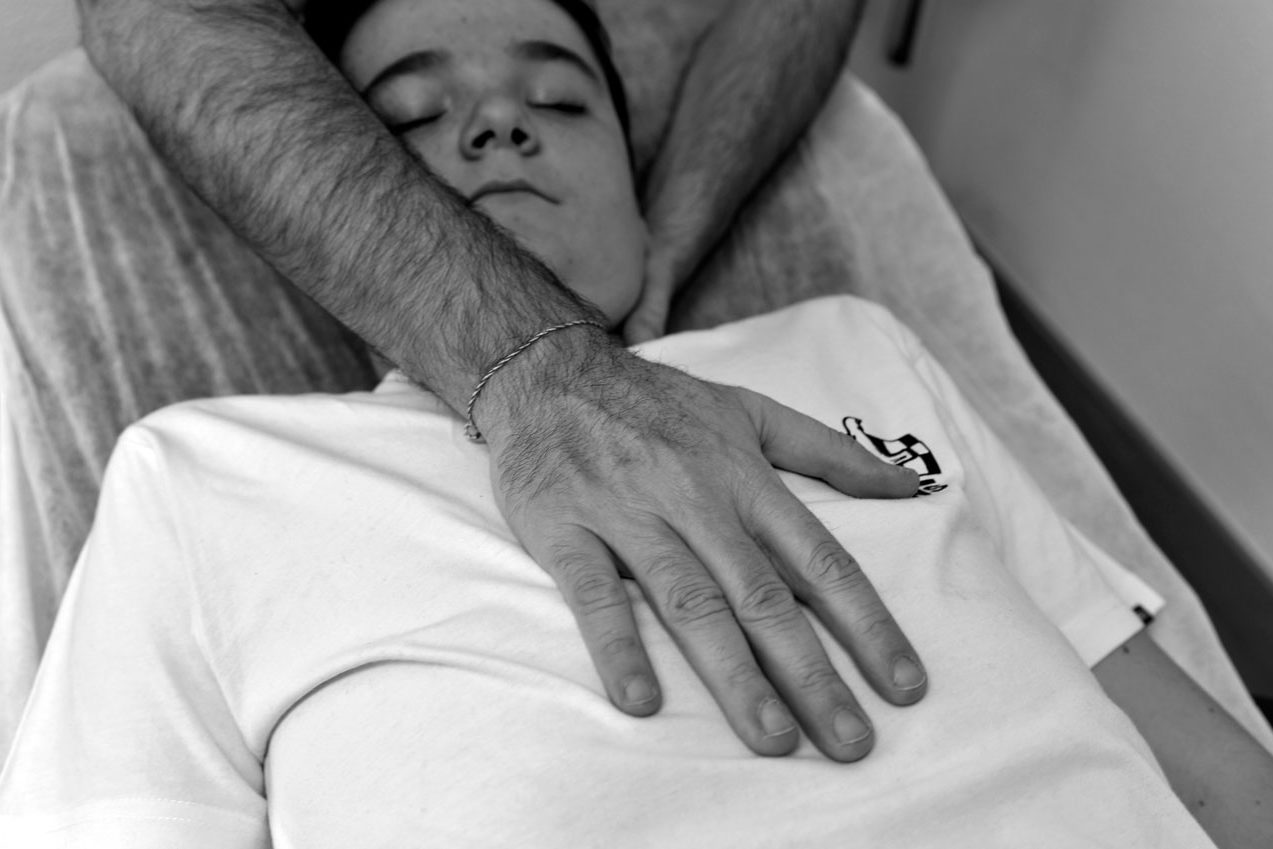 El osteópata utiliza sus manos para tratar al paciente en su totalidad, encontrar la salud y apoyar la homeostasis y el trofismo mediante el equilibrio de la actividad del sistema nervioso autónomo.